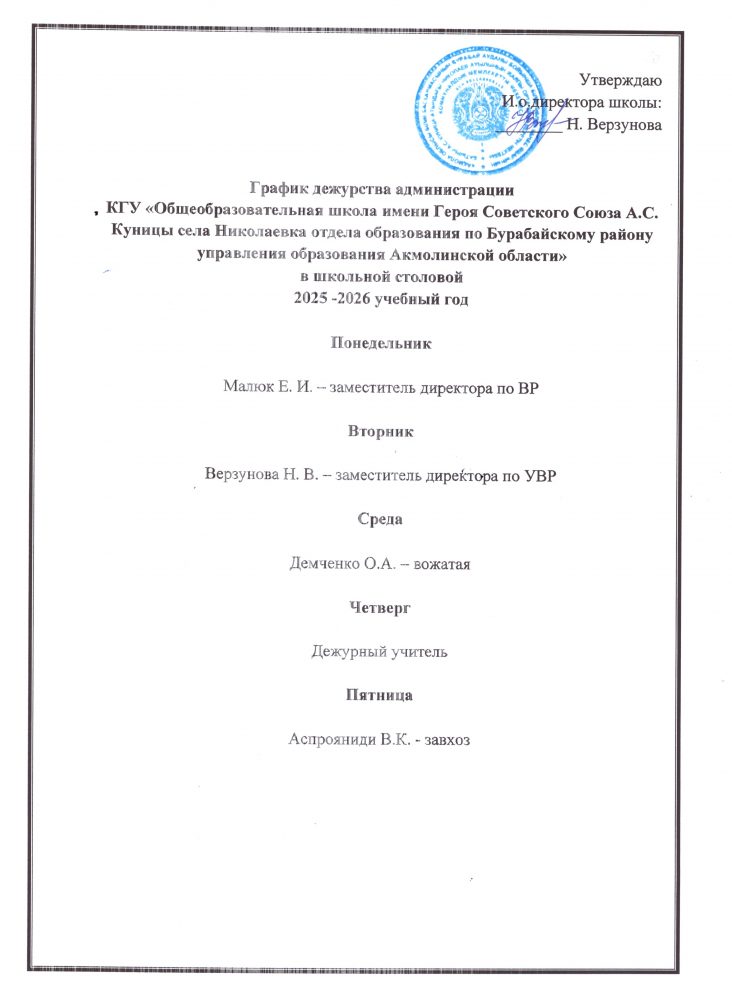 Коммунальное государственное учреждение "Общеобразовательная школа имени Героя Советского Союза А.С. Куницы села Николаевка отдела образования по Бурабайскому району управления Акмолинской области"