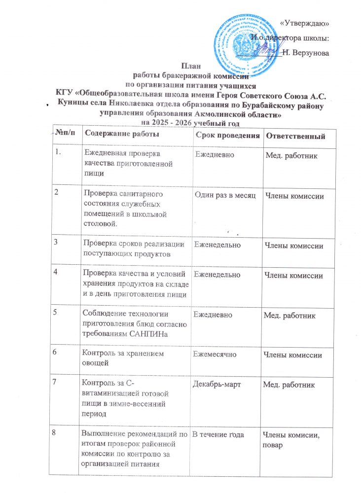 Бракераж комиссиясының жұмыс жоспары